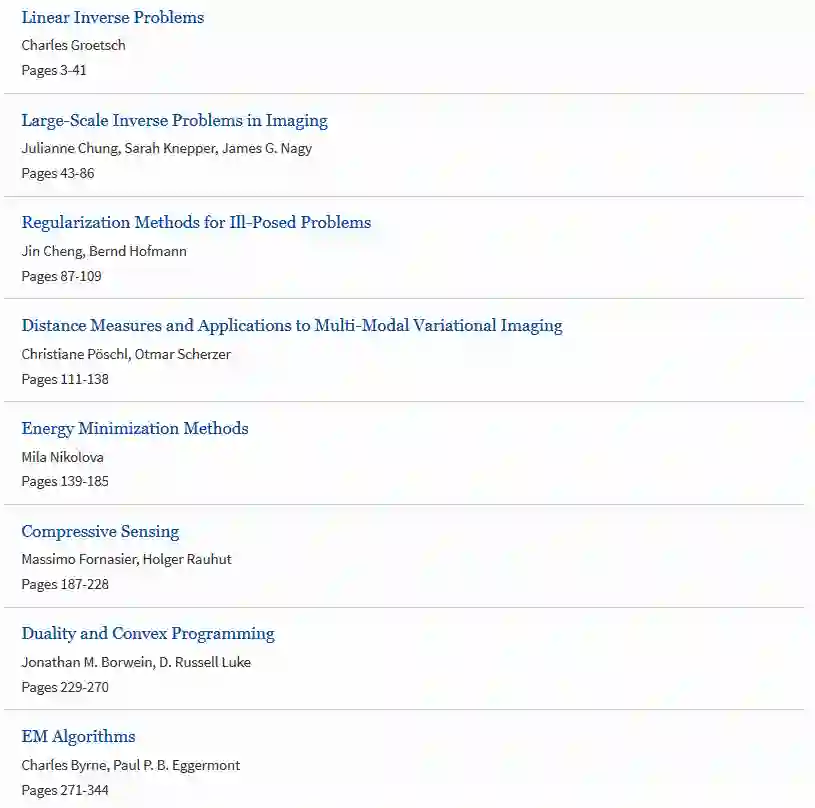 摘要: 该书全面介绍了成像科学中使用的数学技术。材料分为两个中心主题,即反问题(算法重建)和信号与图像处理。主题中的每个部分都涵盖了应用(建模)、数学、数值方法(使用一个实例)和开放性问题。由该领域的专家撰写的报告,在数学上是严谨的。条目是交叉引用的,以便在连接的主题中轻松导航。这本手册有印刷版和电子版两种形式,增加了150多幅插图和扩展书目。