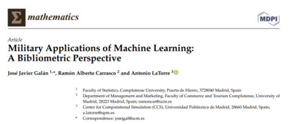 军事环境产生了大量的重要数据,需要使用机器学习对其进行处理。它通过分析产生的大量信息来学习和预测可能的场景的能力提供了自动学习和决策支持。本文的目的是提出一种应用于军事组织的机器学习体系结构模型,并以应用于非军事组织体系结构模型的文献计量学研究为支撑。为此,进行了截至2021年的文献计量学分析,制作了战略图并对结果进行了解释。所使用的信息是从科学界广泛接受的一个主要数据库ISI WoS中提取的。没有直接使用军事消息来源。本工作分为五个部分: 军事领域的机器学习研究; 使用SciMat、Excel和VosViewer工具解释我们的研究方法; 该方法基于数据挖掘、预处理、聚类归一化、战略图及其结果分析来研究军事背景下的机器学习; 在此基础上,我们提出了一种军事应用的概念架构; 最后,我们给出结论,在这里我们将看到机器学习最重要的领域和最新的进展,在这个例子中,应用到军事环境中,分析大量数据,提供效用,机器学习和决策支持。
