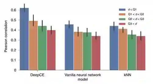 作者对结果的描述主要基于Person相关系数,同时兼顾其他指标。4.1 DeepCE较基线模型有较大提升