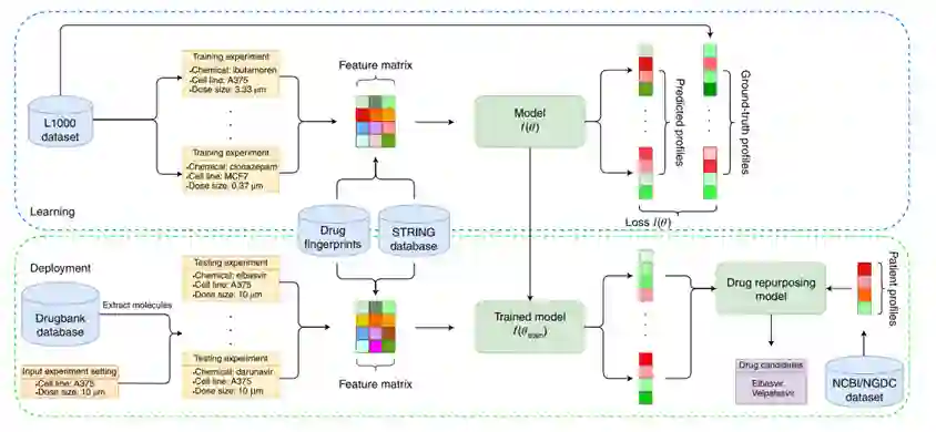 本文从基于表型的高通量数据筛选出发,使用贝叶斯的峰值反卷积技术优化后的LINCS L1000数据集,提出了一种机制驱动的基于神经网络的模型:DeepCE,它利用图神经网络和多头注意力机制来模拟化学子结构-基因和基因-基因关联,最终来预测新型药物作用下的基因表达谱。 此外本文提出了一种新的数据增强方法,该方法从 L1000 数据集中的不可靠数据中提取出了有用信息。 实验结果表明,DeepCE模型的预测性能较好。在COVID-19的药物再利用中具有较高的有效性。