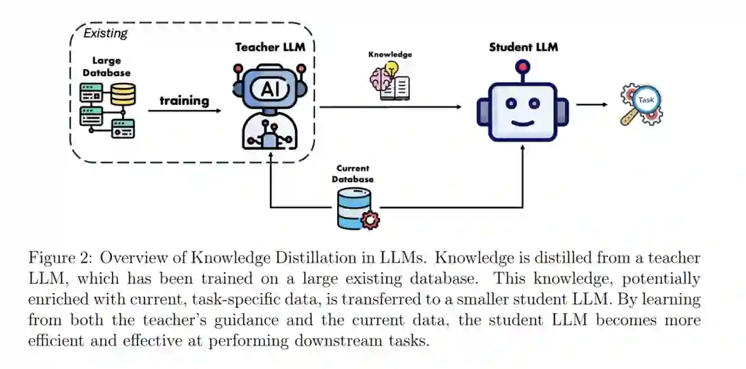 大型语言模型(LLMs)的出现,如 GPT-4(Brown 等,2020)、DeepSeek(Guo 等,2025)和 LLaMA(Touvron 等,2023),彻底改变了自然语言处理领域,使得翻译、推理和文本生成等任务的能力达到了前所未有的水平。尽管取得了这些里程碑式的成就,但与此同时,也带来了实际部署中显著的挑战。首先,LLMs 需要极其庞大的计算资源,通常需要数千 GPU 小时用于训练和推理,这导致了高能耗和显著的环境成本。其次,它们对大规模训练数据集的依赖引发了数据效率、质量和可持续性的担忧,随着公共语料库的过度使用,保持数据的多样性和高质量变得愈加困难(Hadi 等,2023)。此外,LLMs 展现出诸如链式推理(chain-of-thought reasoning,Wei 等,2022)等新兴能力,而在较小模型中复制这些能力则非常具有挑战性,需要复杂的知识迁移技术。 为了应对这些挑战,蒸馏(distillation)作为一项关键策略应运而生,结合了知识蒸馏(Knowledge Distillation,KD)(Hinton 等,2015)与数据集蒸馏(Dataset Distillation,DD)(Wang 等,2018),以同时解决模型压缩和数据效率问题。尤其重要的是,在 LLM 场景中,KD 的成功极大地依赖于 DD 技术,后者能够通过紧凑且信息丰富的合成数据集来提炼和传递教师模型(teacher LLMs)中的复杂知识。 知识蒸馏(KD)通过对齐输出或中间表示,从大型预训练教师模型向较小、高效的学生模型传递知识。尽管在中等规模教师模型中 KD 效果显著,但在面对 LLMs 的庞大规模时,传统 KD 方法遇到了挑战,因为知识分布在数十亿参数和复杂注意力模式中。此外,知识不仅限于输出分布或中间表示,还包括更高阶的能力,如推理能力和复杂问题求解能力(Wilkins 和 Rodriguez,2024;Zhao 等,2023;Latif 等,2024)。 数据集蒸馏(DD)旨在将大型训练数据集压缩成保留必要信息的紧凑型合成数据集。近期研究表明,DD 能显著降低 LLM 训练所需的计算成本,同时维持性能。例如,DD 能将数百万训练样本浓缩成数百个合成示例,并保留特定任务的知识(Cazenavette 等,2022;Maekawa 等,2024)。在 LLM 场景下,DD 成为 KD 的重要辅助,它能识别高度影响力的训练示例,反映教师模型的推理过程,从而引导学生模型高效学习,同时避免对冗余数据的过拟合(Sorscher 等,2022)。 LLMs 的规模引发了双重挑战:一是对不可持续大规模数据集的依赖(Hadi 等,2023),二是新兴能力(如链式推理(Wei 等,2022))的精准迁移需求。这些挑战促使研究者必须在 KD 和 DD 上双管齐下。虽然 KD 通过知识迁移实现模型压缩,但传统 KD 无法单独解决数据效率危机:训练新一代 LLMs 时使用冗余或低质量数据只会带来收益递减现象(Albalak 等,2024)。DD 则通过构建紧凑且高保真度的数据集(例如,稀有推理模式(Li 等,2024))来补充 KD 的不足,正如 LIMA 项目所展示的,1,000 个示例便能达到教师级别性能(Zhou 等,2023)。这种协同利用了 KD 在表征迁移上的优势与 DD 在生成任务特定数据上的能力,共同解决了隐私保护、计算负载和数据稀缺问题,使得小型模型在保持蒸馏效率的同时,也能保留大模型的重要能力。 本综述系统梳理了适用于 LLMs 的 KD 与 DD 技术,并进一步探讨了二者的融合。传统 KD 将教师模型的知识迁移至学生模型,但面对现代 LLMs 的前所未有规模,捕捉新兴能力及保留深层知识成为重大挑战。DD 通过合成小规模、高影响力的数据集,保留了语言、语义及推理多样性,有效辅助了 KD。本综述以独立的 KD 与 DD 技术进展为基础,同时深入探讨了它们结合后对模型压缩、训练效率及资源感知部署带来的潜力。 随后各章节将围绕以下关键方面展开: * 第 2 节:KD 与 DD 的基础知识,区分它们在压缩 LLMs 和优化训练效率方面的角色; * 第 3 节:LLMs 中 KD 的方法学,包括基于推理过程的蒸馏(rationale-based distillation)、不确定性感知方法、多教师框架、动态/自适应策略以及任务特定蒸馏,并回顾相关理论研究以深入理解 KD 的基本原理; * 第 4 节:LLMs 中 DD 的方法学,涵盖基于优化的数据集蒸馏、合成数据生成和辅助的数据选择策略; * 第 5 节:KD 与 DD 的整合,介绍结合 KD 与 DD 策略的统一框架以提升 LLMs; * 第 6 节:评估指标,关注蒸馏在 LLMs 中的性能保持、计算效率和鲁棒性; * 第 7 节:跨医疗健康、教育、生物信息学等领域的应用示例,展示蒸馏技术在真实场景中的实用价值; * 第 8 节:挑战与未来方向,识别需要改进的关键领域。