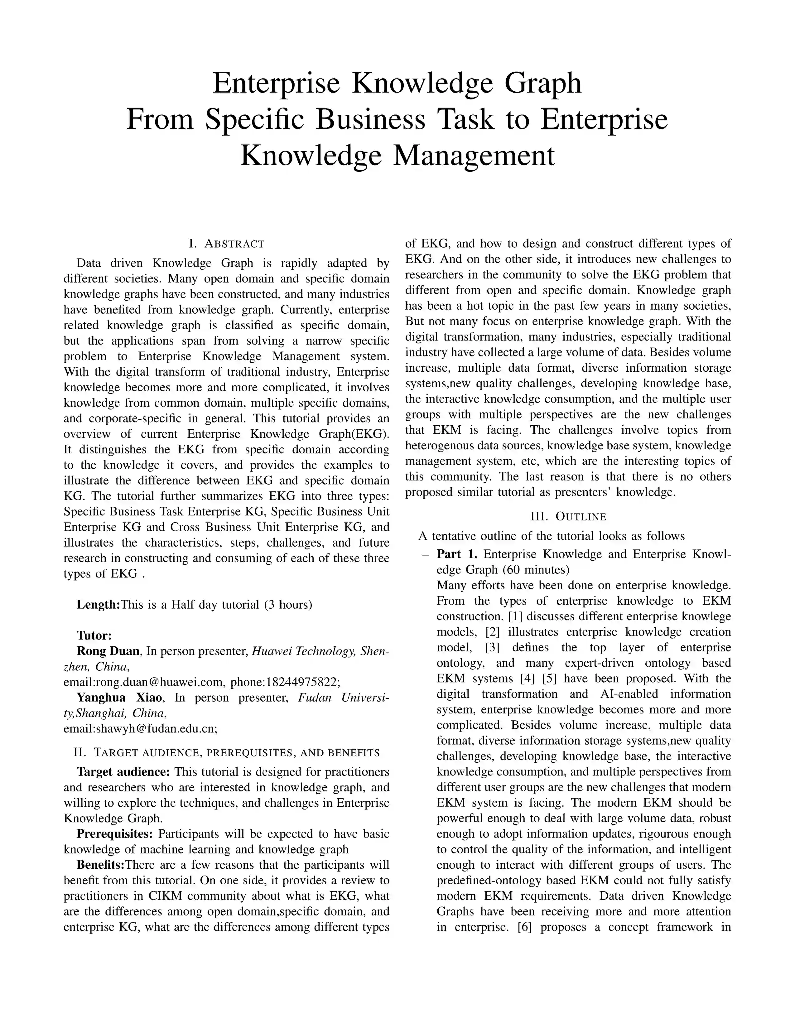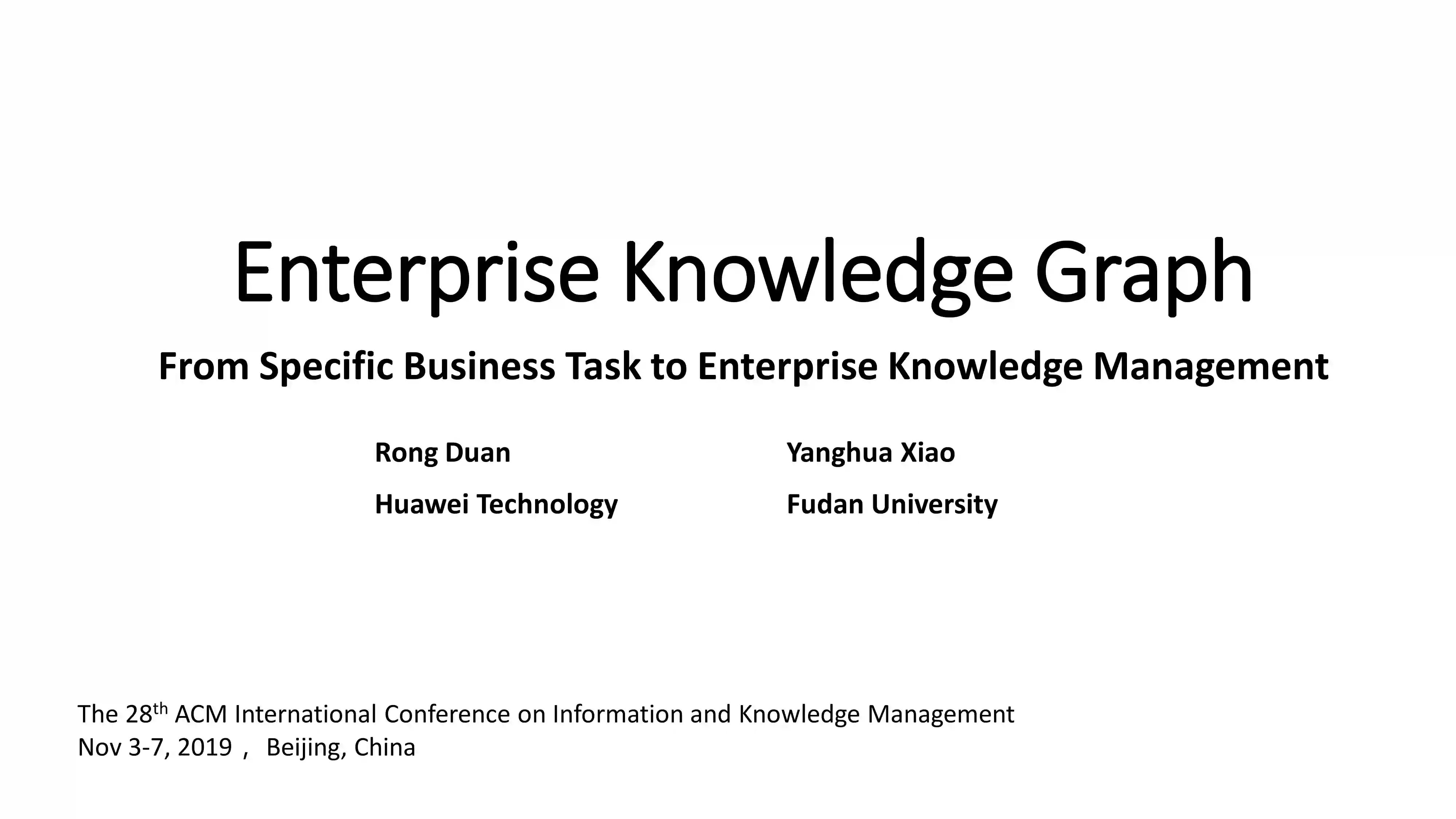 报告主题:Enterprise Knowledge Graph From Specific Business Task to Enterprise Knowledge Management