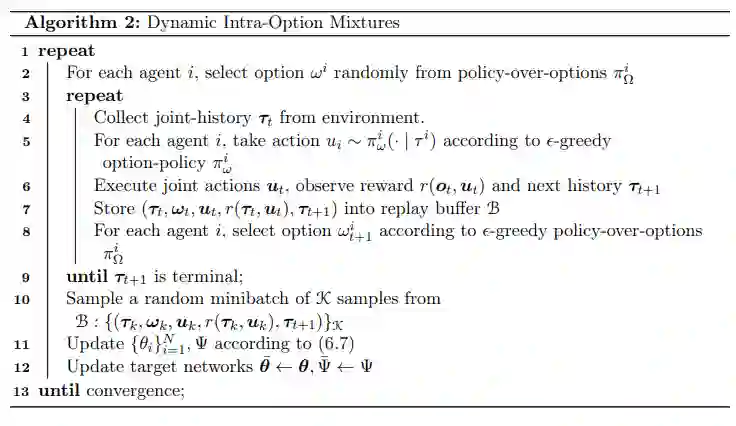 任务间知识迁移本质是MARL领域的另一根本挑战,源于交互复杂性、学习环境非平稳性及高维状态/动作空间的维度灾难。此外,任务异质性、现实场景部分可观测性及涌现复杂行为加剧迁移难度。更多智能体引入导致可扩展性问题,不同多智能体任务环境间的策略泛化亦趋困难。这些挑战要求开发能有效捕获与迁移知识的方法,但MARL场景间的知识迁移仍极具挑战。理解MARL算法训练目标中各组件的影响对开发高效迁移算法至关重要,包括:(1) 状态表征——探究不同编码方法如何影响知识迁移;(2) 动作空间——研究离散表征对可迁移性的作用;(3) 学习算法——聚焦"中心化训练-分散化执行"(CTDE)问题。为应对知识迁移难题,本研究分解MARL训练过程的构成要素,并深入探索任务结构及其在迁移中的关键作用。任务结构指多智能体场景中的潜在模式、层级与关联关系。为此,提出动态内部选项混合(DIOMIX)技术——通过任务分解将复杂多智能体任务拆解为更简明的子任务。通过解析任务结构,揭示可泛化原则以指导开发更鲁棒、自适应的MARL系统,实现跨场景高效知识迁移。