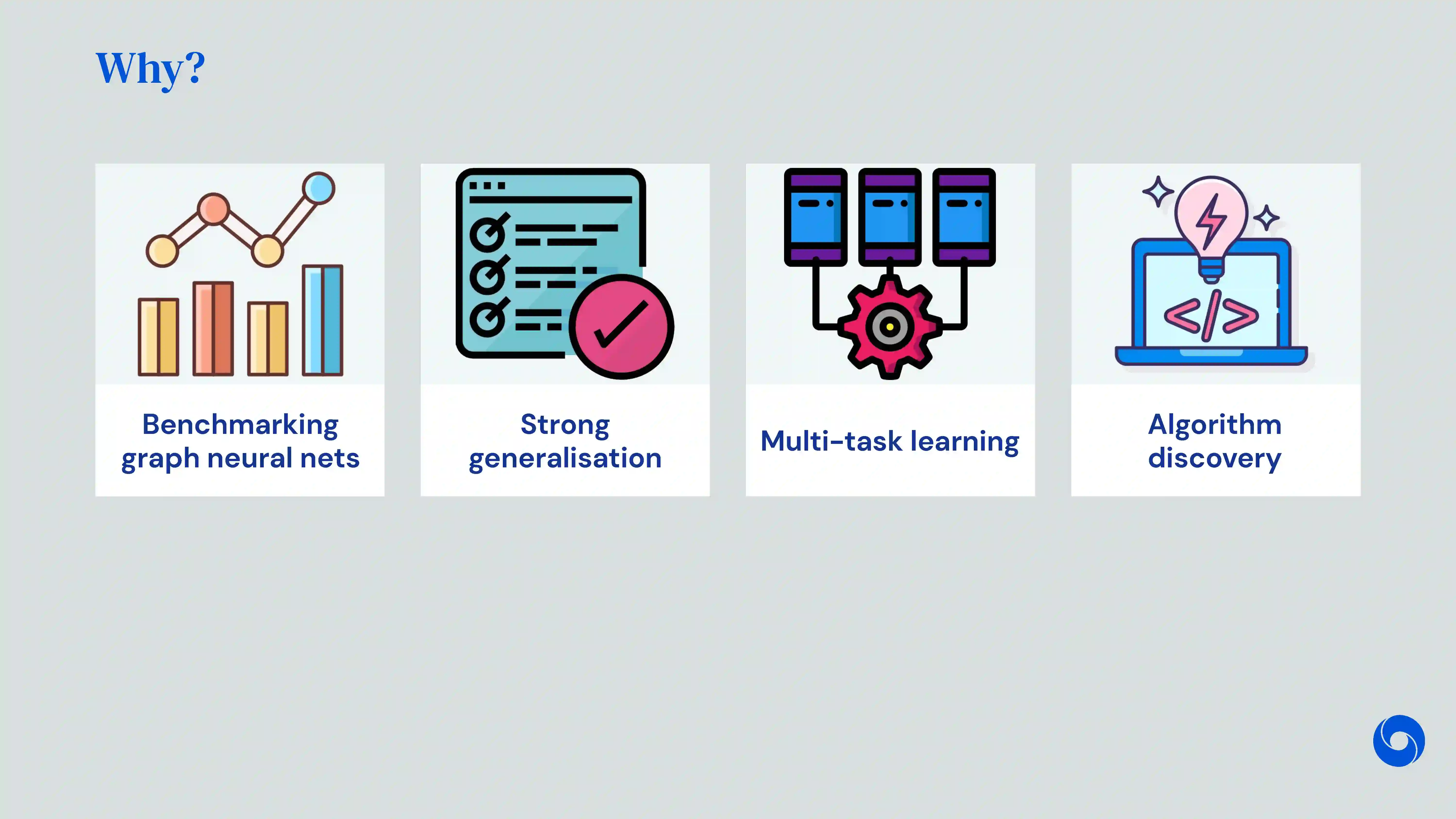 【导读】国际万维网大会(The Web Conference,简称WWW会议)是CCF-A类会议。WWW 2020将于2020年4月20日至4月24日在中国台湾台北举行。本届会议共收到了1129篇长文投稿,录用217篇长文,录用率为19.2%。这周会议已经虚拟召开。图深度学习研讨会(DL4G)展示结构化数据的嵌入和表示学习以及图深度学习的最新进展。来自DeepMind的研究科学家Petar Veličković给了关于《图表示学习算法推理》的报告,共46页ppt,详述了神经图算法推理的前沿研究进展,涵盖GNN基准、泛化、多任务学习和算法发现。