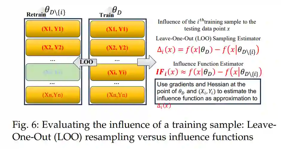 通过衡量训练样本对决策过程的影响来解释深度模型对于理解和验证这些模型的输出至关重要。这一过程通常涉及多种技术,这些技术将单个训练样本与模型所做决策之间的相关性映射出来[221]、[174]。在本节中,我们将现有工作分类为以下三个方向。