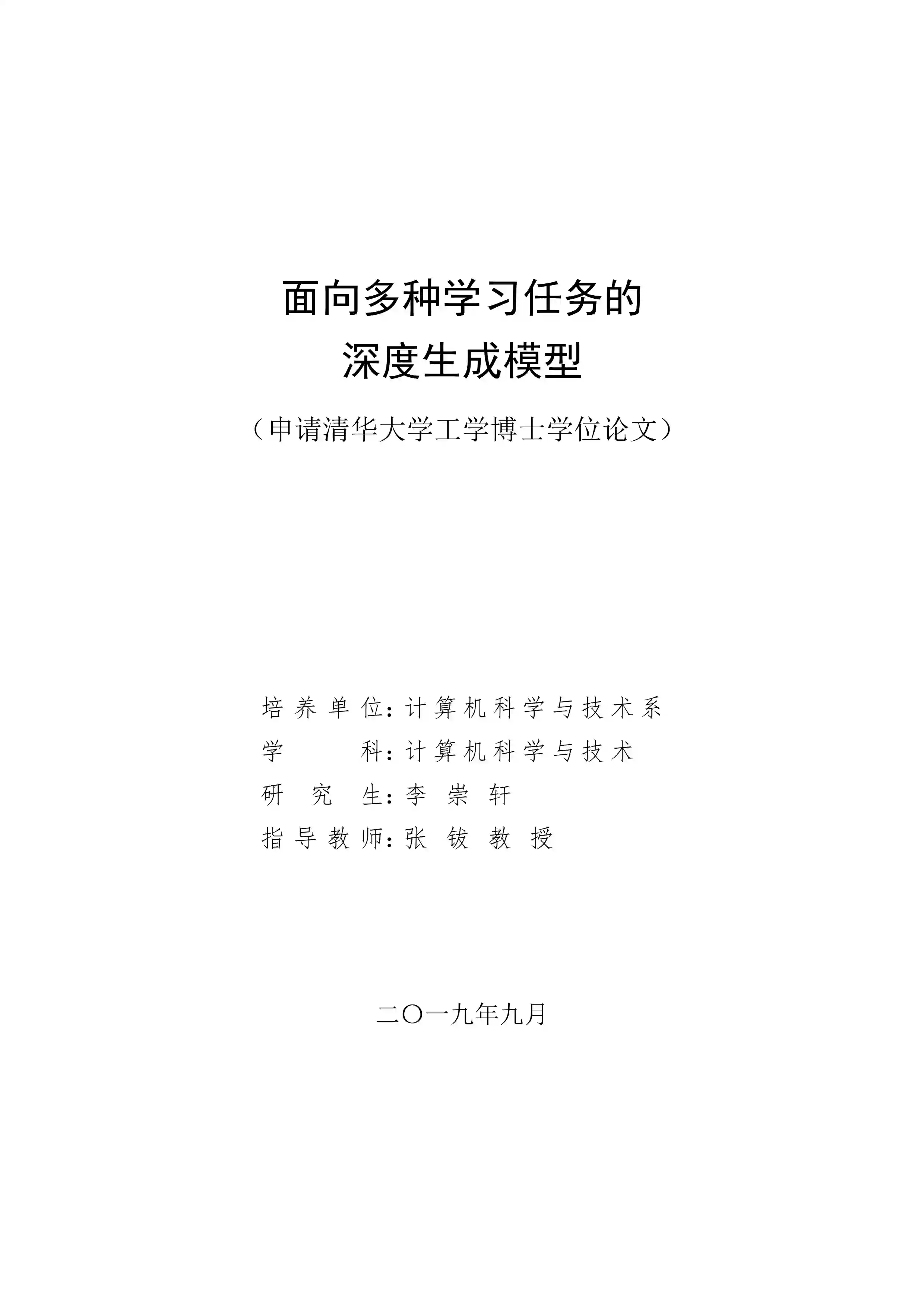 关键词: 深度生成模型;变分推理;对抗训练;图像合成;有限标注