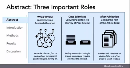 虽然你的主要手稿可能包括多个发现,摘要只有空间集中在一个或两个关键发现。因此,你应该花时间思考哪个是最重要的。花点时间确保你的介绍、方法、结果和结论在摘要中是一致的。例如,你的论文可能会检查多种结果(如并发症、死亡率、成本),但你只打算抽象地关注死亡率和成本。你的介绍、方法、结果和结论都应该针对这两个结果。如果你在摘要中陈述研究了三种结果,但在摘要的结果中只报告了两种,读者会感到非常困惑。