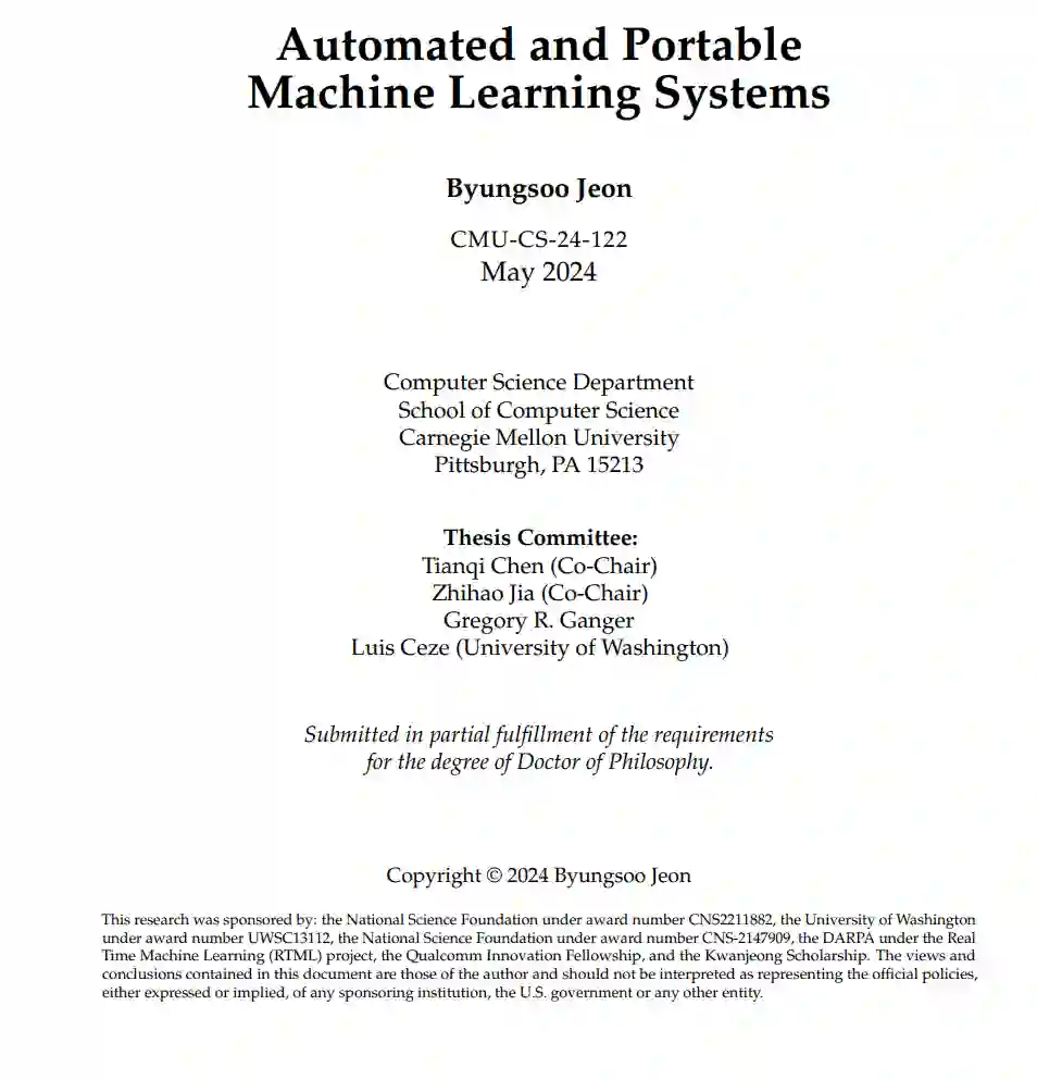 在本论文中,我们旨在解决构建自动化和可移植ML系统的上述挑战,重点关注关键的ML系统层。具体而言,本文探讨了构建高效系统的方法,该系统自动化1) ML后端的集成和2) ML并行性,并使它们更具可移植性。我们开发了一个用户界面和系统堆栈,以提高不同后端和底层硬件之间的可移植性。我们还设计了实际的搜索空间和算法,以自动化后端部署和并行化。