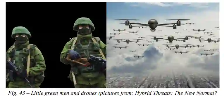 然而,有必要提醒的是,Cayirci, Bruzzone等人主要将任何混合对抗视为北约综合办法的"阴暗面"。北约综合办法是在2010年11月的里斯本峰会上提出的,会上通过了北约的新战略概念。特别强调的是,北约行动的经验教训表明,有效的危机管理需要一个涉及政治、民事和军事手段的综合方法;军事手段虽然重要,但本身不足以应对欧洲-大西洋和国际安全的许多复杂挑战。盟国领导人在里斯本同意加强北约对危机管理综合方法的贡献,作为国际社会努力的一部分,并提高北约为稳定和重建做出贡献的能力(北约里斯本峰会2010;北约AJP,2017)。现在,在下文中将研究两个有趣的贡献,虽然它们没有在很大程度上偏离北约ET43的结论,但是提供了有趣的见解,提出了混合是一种对抗形式的概念,一点也不新鲜,而且混合威胁可以自己建立起混合战争。
