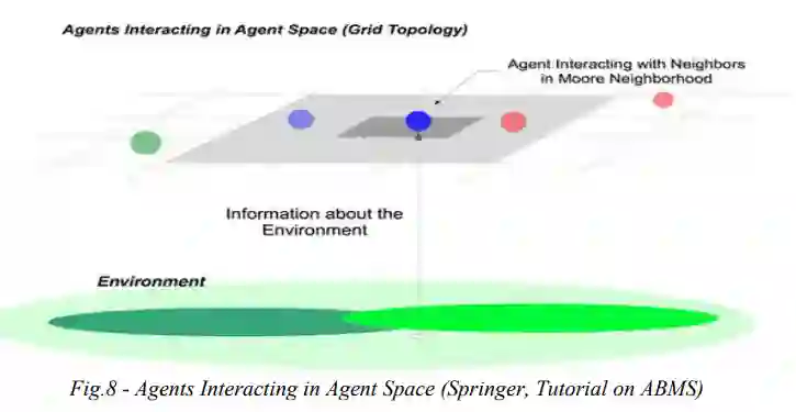 ABM是随机模拟,围绕着被称为智能体的动态互动对象,这些智能体通常都有相当的规模和范围(Hartley,2015)。在这方面,人类和社会动态建模只能通过采用多智能体模拟技术来进行(Squazzoni,2012)。在一些ABM中,智能体都是同一对象的相同副本,而在其他ABM中,有两种或更多类型的智能体。智能体有预先设定的属性和行为;然而,数据输入的选择可以极大地改变模型所宣称的现实世界的理想。例如,ABM中的相同智能体可以在一个模型中代表有任务的士兵,在另一个模型中代表海洋中的一组鱼雷。一般来说,ABM包含一些空间表示,(x,y)或(x,y,z)坐标,可以用来模拟现实世界的距离。只有多智能体模拟同时允许真实地考虑到社会背景下的人类认知和行为(Geller,2016)。存在许多类型的基于智能体的模型,在经验基础、有效性的程度和范围以及基于智能体的模型的目的方面可以发现差异。