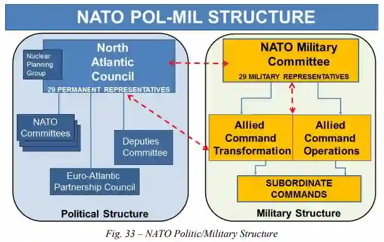 在介绍本段的主题之前,有必要强调,在北约内部进行的大多数活动(上面的练习)都有一个安全分类,据此,所采用的硬件和软件模拟必须坚持这种安全要求;这是因为北约是由一个政治和军事机构组成的,在处理和交换信息时都需要保密(如下图33)。