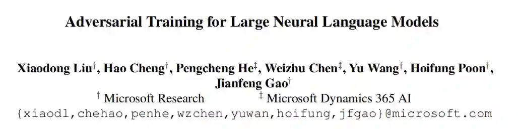 题目: Adversarial Training for Large Neural Language Models