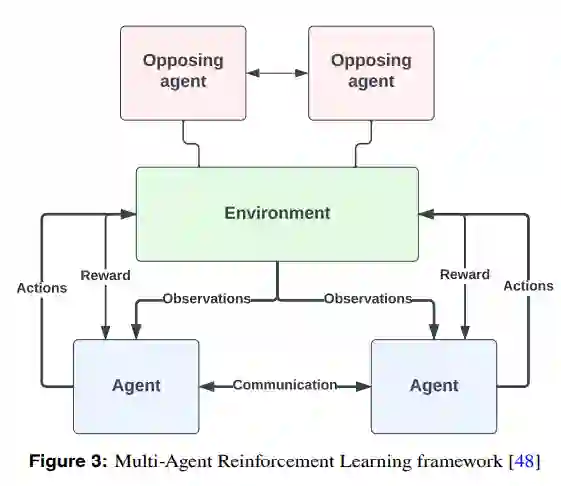 在某些条件下,强化学习(RL)能够解决 POSG [5]。在同一游戏概念中,RL 在 DeepMind 的领导下在人工智能界引起了轰动。该公司创造的人工智能 AlphaGo [7] 在与世界冠军李世石的 GO 对弈中获胜。AlphaGo 的一个特别举动让李世石大吃一惊[8],起初似乎是个失误,这可以看作是一个例子,说明人工智能不仅有能力改进以前采用的方法和程序,而且还能想出全新的方法来解决问题,无论是偶然还是有意为之。自 AlphaGo 之后,DeepMind 进一步扩大范围,创建了 AlphaStar [9],它利用多智能体强化学习,在实时战略游戏《星际争霸 II》中跻身人类玩家的前 0.2%。