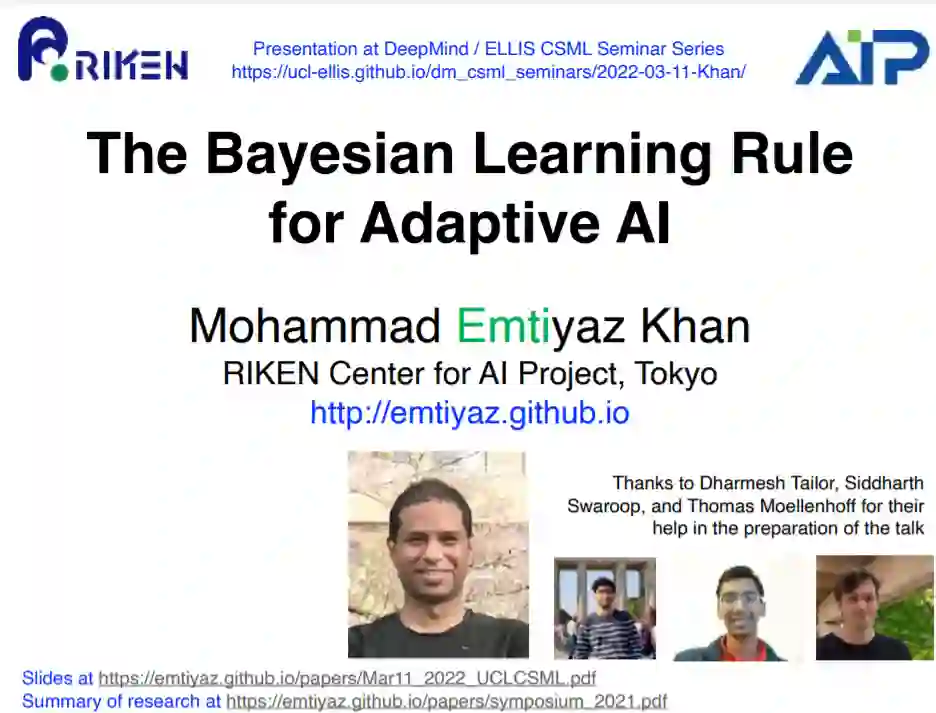 人类和动物天生具有自主学习和快速适应环境的能力。我们该如何设计具有同样功能的AI系统?在这次演讲中,我将介绍贝叶斯原理来弥合人类和人工智能之间的鸿沟。我将说明各种各样的机器学习算法都是被称为贝叶斯学习规则的单一学习规则的实例。该规则揭示了一种双重视角,为基于机器学习的人工智能系统提供了新的自适应机制。我的希望是让观众相信,贝叶斯原理对于像我们一样高效学习的人工智能来说是不可或缺的。