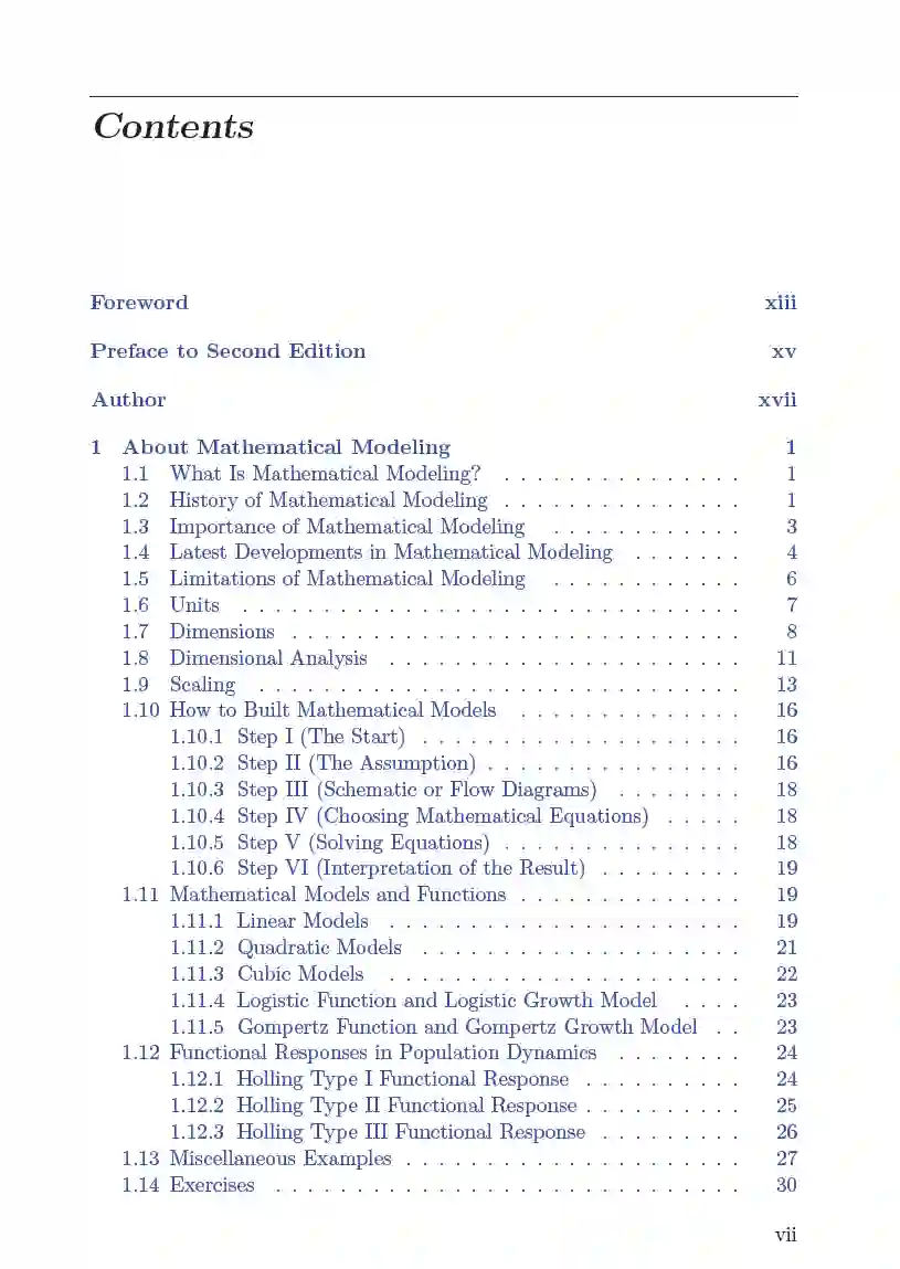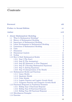 本书的一个独特之处是它对数学建模不同示例的广泛覆盖,包括人口模型、经济模型、军备竞赛模型、战斗模型、学习模型、酒精动态模型、碳定年法、药物分布模型、机械振荡模型、流行病模型、肿瘤模型、交通流模型、犯罪流模型、空间模型、足球队表现模型、呼吸模型、两个神经元系统模型、僵尸模型和恋爱事务模型。平衡点、稳定性、相平面分析、分叉、极限周期、倍周期和混沌等常见主题贯穿多个章节,其在模型背景下的解释已得到突出。在第三章中,还讨论了使用实际数据估算系统参数以进行模型验证的部分。 特点: