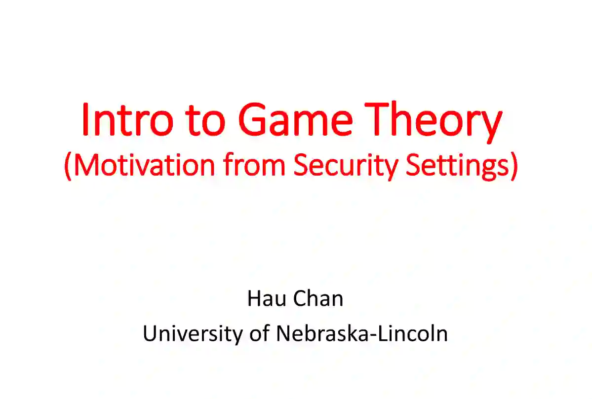 作者介绍: Hau Chan,林肯大学计算机科学与工程系助理教授,电子邮件:hchan3@unl.edu。 Chan博士曾在多代理系统和经济的交叉领域工作。他早期的工作重点是应用图形游戏来建模和研究相互依赖的安全域(例如,安全投资决策)。他最近正在进行的工作是关于一款具有复杂策略空间的游戏。 他在AAMAS 2019上提供了有关计算游戏理论主题的教程。