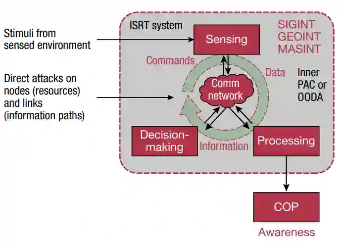将C5ISRT系统看作是一种CDS,它获取并保持对环境的态势感知,包括该环境中的特定实体(即用于目标定位)。在这种情况下,只有当一个系统在遇到类似的刺激时,具有回忆其先前行动的记忆时,它才是 "认知的"。这并不意味着该系统将采取相同的先前行动;这意味着该系统从遇到类似的刺激中获得信息并 "更加聪明"。CDS必须适应可能随着冲突的升级而变化的环境。这是C5国际空间站CDS的一个重要特性,它为负责创造预期效果以实现任务指挥官意图的BM决策系统(包括人类决策者)提供信息。ISRT系统作为一个反馈系统运行,其PAC不断地重新引导传感、传输和处理资源,并管理信息流以调节由此产生的态势感知。此外,ISRT-BM组合系统作为一个外部反馈系统运行,其PAC不断地重新引导武器和反措施以调节战斗空间的效果。