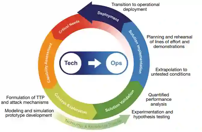 APL的C5ISRT优势地位愿景利用广泛的能力,为解决问题提供端到端的方法(图1),包括制定TTP和攻击机制、建模和模拟原型开发、实验和假设测试、量化的性能分析、推断到未测试的条件、规划和演练现场实验和演示,以及过渡到作战部署。这些能力包括成熟的建模、模拟和分析环境、试验台和试验场--所有这些都来自于APL与战略、作战和战术作战团体的深入联系。