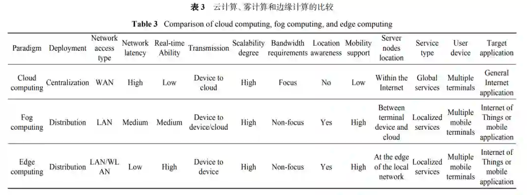 另外,雾计算中更加靠近边缘终端的部分,称之为边缘计算(Edge computing)。边缘计算可将元宇宙计算所需的大型服务分解为小巧且易于管理的子任务,并将这些任务分散到边缘节点去处理。边缘计算在物理上更接近终端用户,进一步将迟延时间最小化,为用户流畅、优质的体验提供保障[42]。另外,当元宇宙的内容涉及多个用户时,会大大增加网络流量负载,Kim[43]提出了一种在边缘网络中基于云 VR 的服务配置和部署方法,这只是对其的初步探索。由于云计算、边缘计算以及雾计算各有优缺点及特性,如表3 所示,故利用云边协同策略降低网络时延及流量负载[44–45]受到关注,为元宇宙关键技术的研究提供一种选择。
