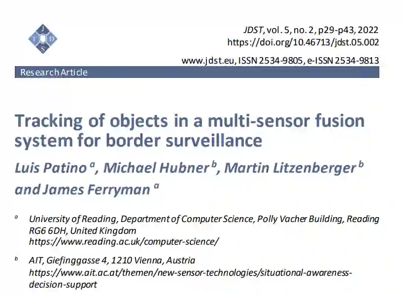 这项工作提出了一个在欧盟项目FOLDOUT中开发的融合和跟踪系统,旨在通过融合不同的传感器信息和提出对监视区域内检测到的目标自动跟踪来促进边防工作。FOLDOUT的重点是欧盟内部和外部地区的穿透式树叶检测。融合多个传感器信号可以提高检测的有效性,特别是在森林和其他被树叶遮挡的地区。我们使用加权地图(也称为热图)来结合多传感器信息;对所产生的融合目标进行跟踪;根据对融合检测的时间关联的成本计算来创建或更新跟踪。我们比较了来自单个传感器的跟踪结果和来自融合目标的跟踪结果,这些数据是在模拟边界收集的,代表了保加利亚的实际欧盟边界。结果表明,如果根据融合后的数据而不是单个传感器的信息进行追踪,追踪效果会得到加强。