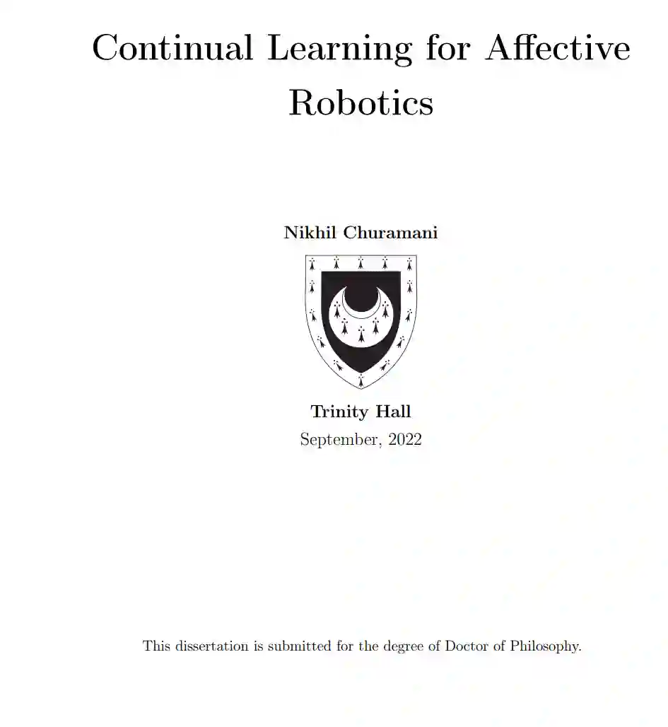 近年来,人工智能(AI)和人机交互(HRI)领域的重大进步使得机器人得以融入人类的日常生活中。在以人为中心的环境中运行的机器人需要积极参与人类的“情感循环”,感知和解释人类的社会情感行为,同时学会以一种有助于他们社会和情感健康的方式作出回应。赋予情感机器人学习机制,使它们能够深刻理解人类行为以及自身在互动中的角色,是情感机器人研究的核心关注点。目前基于机器学习(ML)的解决方案,无论是强大的情感感知还是行为生成,都倾向于应用的普遍化。这些解决方案在大量数据上进行预训练,尽管能够实现各种各样的应用,但它们是静态的,无法充分适应现实世界互动的动态变化。另一方面,情感机器人需要个性化的交互能力,这些能力对个体的社会情感行为敏感,可以根据他们调整情感互动,不断扩大他们的实时学习范围,包括新信息,同时确保保留过去的知识。