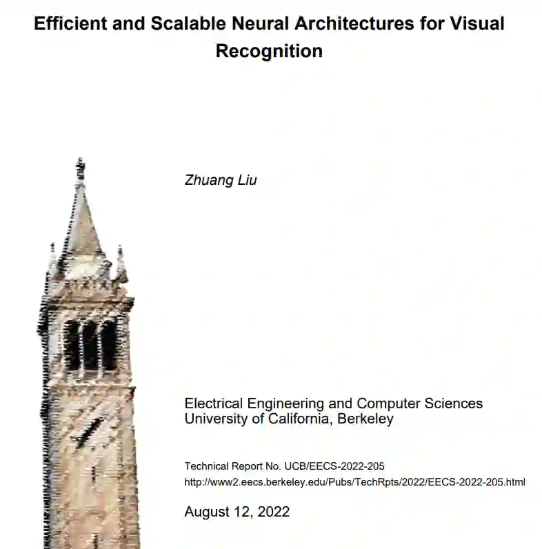 ConvNets和其他神经体系结构在计算机视觉方面的成功应用是过去十年人工智能革命的核心。对于可扩展视觉架构的强烈需求是既小又大。小型模型代表了对效率的需求,因为视觉识别系统通常部署在边缘设备上;大型模型强调了对可扩展性的追求——利用日益丰富的计算和数据实现更高精度的能力。这两个方向的研究都是卓有成效的,产生了许多有用的设计原则,对更多性能模型的追求从未停止。同时,文献中非常快的发展速度有时会掩盖某些方法取得良好结果的主要机制**。在本论文中,我们将从两个方面展开研究:(1)开发高效灵活的ConvNet模型推理直观算法;(2)研究基线方法,揭示流行可扩展方法成功背后的原因**。首先,我们将介绍我们对第一个随时密集预测算法之一的工作。然后,我们将通过将模型修剪算法与一个极其简单的基线进行比较来检验它们的有效性,并论证它们的真正价值可能在于学习架构。最后,通过采用《Transformers》中的设计技术对传统的ConvNet进行现代化改造,我们提出了关于自注意力是否导致了Transformer最近出色的视觉扩展性的问题。
