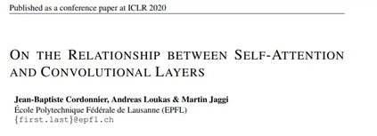 On the Relationship between Self-Attention and Convolutional Layers [link] Cordonnier, J., Loukas, A. and Jaggi, M., 2020. International Conference on Learning Representations.
