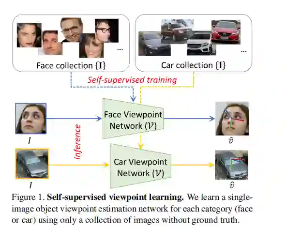 训练深度神经网络以估计对象的视点需要标记大型训练数据集。但是,手动标记视点非常困难,容易出错且耗时。另一方面,从互联网(例如汽车或人脸)上挖掘许多未分类的物体类别图像相对容易。我们试图回答这样的研究问题:是否可以仅通过自我监督将这种未标记的野外图像集合成功地用于训练一般对象类别的视点估计网络。这里的自我监督是指网络具有的唯一真正的监督信号是输入图像本身。我们提出了一种新颖的学习框架,该框架结合了“综合分析”范式,利用生成网络以视点感知的方式重构图像,并具有对称性和对抗性约束,以成功地监督我们的视点估计网络。我们表明,对于人脸,汽车,公共汽车和火车等几个对象类别,我们的方法在完全监督方法上具有竞争性。我们的工作为自我监督的观点学习开辟了进一步的研究,并为其提供了坚实的基础。