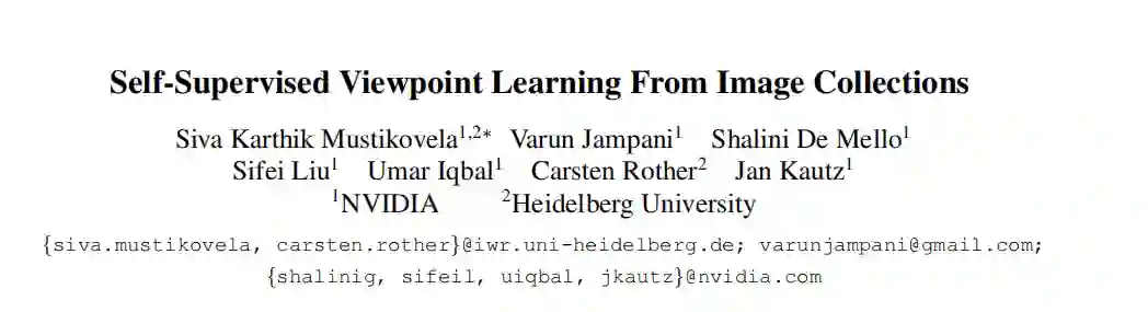题目: Self-Supervised Viewpoint Learning From Image Collections