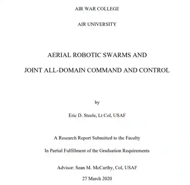 未来,半自主或全自主空中机器人群的扩散、在作战空间内的机动以及可能在领域之间的机动,将使利用现有能力和程序控制空域变得越来越困难。假设到 2040 年将空中机器人群纳入联合部队的现有能力 “工具包”,空军现在就应探索新的 C2 方法和空域管理程序,以便更好地将这些系统纳入战区空中控制系统(TACS),确保在多域作战(MDO)期间进行先进、及时和有效的空域控制。