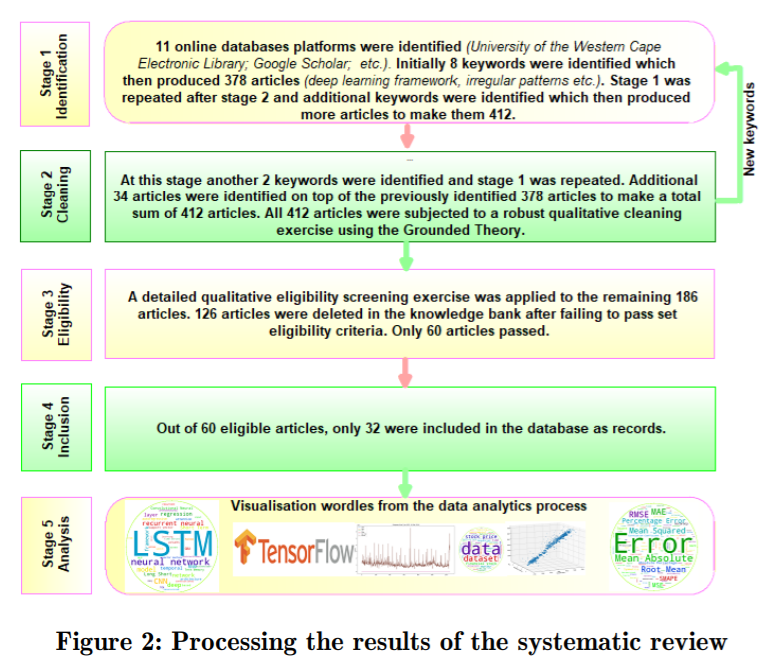 本文回顾了过去使用深度学习框架分析离散不规则模式的复杂顺序数据集的方法。这种数据集的典型示例是金融数据,其中特定事件触发了数据序列中的突然不规则变化。传统的深度学习方法在分析这些数据集时表现不佳甚至失败。系统的文献综述的结果揭示了基于递归神经网络的框架的主导地位。 发现主要使用平均绝对误差和均方根误差准确性度量来评估深度学习框架的性能。所确定的潜在挑战是:缺乏性能稳健性,方法的不透明性,内部和外部体系结构设计和配置问题。这些挑战为改进复杂的不规则图案的顺序数据集的框架提供了机会。