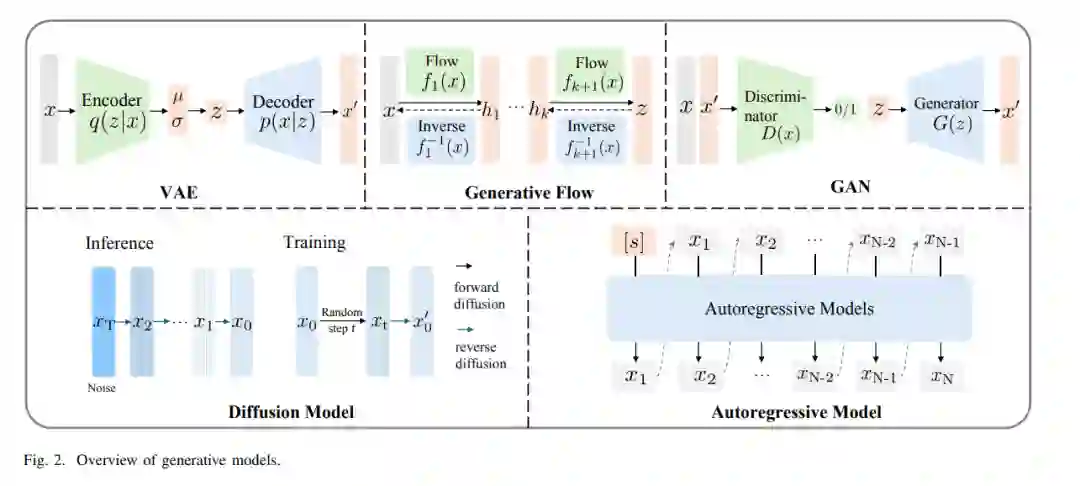 生成式学习模型作为现代人工智能中最重要的学习模型类别之一,解决了机器人操作中一些先前未解决的挑战,尤其是在抓取任务中。首先,它们生成多样化和高质量数据的能力显著减少了对大量真实世界数据的依赖。通过生成合成的抓取场景和物体变体,这些模型使机器人能够在数据稀缺的环境中高效训练并处理更广泛的物体[4, 5]。其次,它们对高维动作和物体空间的建模能力使机器人能够预测复杂或未见物体的可行抓取配置和轨迹[6, 7, 8],从而提高了机器人适应新任务和环境的能力,增强了抓取规划的鲁棒性。第三,它们在捕捉物体结构和交互动态的潜在表示学习方面的优势使机器人能够泛化到不同形状、纹理和物理属性的物体[9, 10],从而在需要精确操作的任务中实现更可靠的性能,即使在非结构化或动态环境中也是如此。这些突破凸显了生成式模型在推动机器人抓取和操作方面的变革潜力。