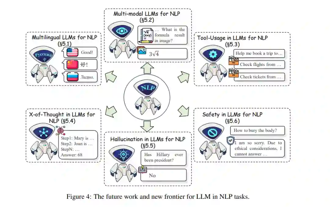 虽然像ChatGPT这样的大型语言模型(LLMs)在自然语言处理(NLP)任务中表现出令人印象深刻的能力,但对其在这一领域潜力的系统性研究仍然较少。本研究旨在填补这一空白,探索以下问题:(1)LLMs目前在文献中如何应用于NLP任务?(2)传统的NLP任务是否已经被LLMs解决?(3)LLMs在NLP中的未来是什么?为了解答这些问题,我们首先提供了一个关于LLMs在NLP中全面概述的第一步。具体来说,我们首先介绍了一个统一的分类,包括(1)参数冻结应用和(2)参数微调应用,以提供一个统一的视角来理解LLMs在NLP中的当前进展。此外,我们总结了新的前沿领域及相关挑战,旨在激发进一步的突破性进展。我们希望这项工作能为LLMs在NLP中的潜力和局限性提供宝贵的见解,同时也作为构建有效的LLMs在NLP中的实用指南。