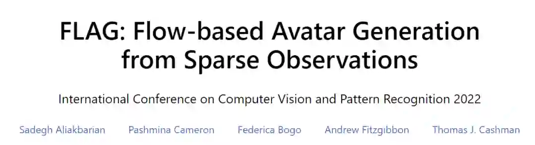 今天专知小编给大家带来的是「微软混合现实与人工智能实验室」最新在CVPR 2022上录用的“FLAG: Flow-based Avatar Generation from Sparse Observations”一文。本篇由Sadegh Aliakbarian,Pashmina Cameron,Federica Bogo,Andrew Fitzgibbon,Thomas J. Cashman等微软科学家联合发表。 论文链接 https://microsoft.github.io/flag/files/paper.pdf