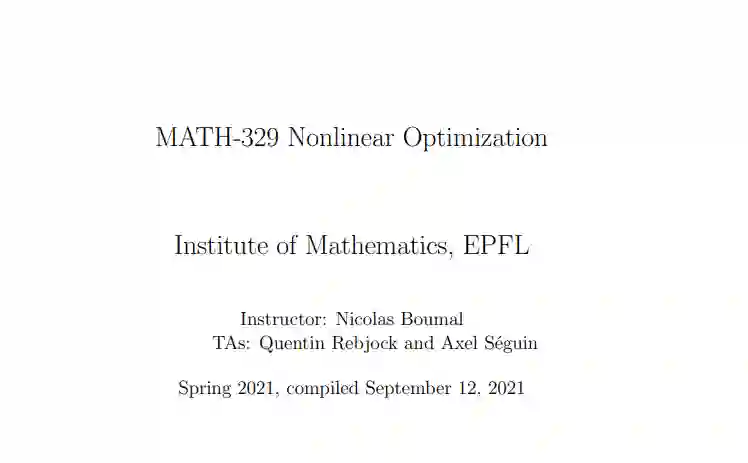 本笔记包含 2021 年春季学期在 EPFL 教授的 MATH-329课程 – 非线性优化中涵盖的一些材料。这些笔记旨在简要总结您在课程中取得成功所需的所有概念。