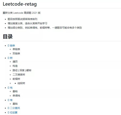 增加细分类别,例如单调栈,前缀树等,一道题目可能会有多个类别