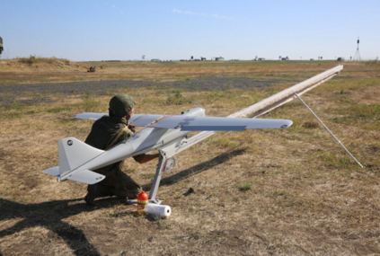 *俄军第150摩步师士兵在2019年演习中准备发射"海鹰"无人机。[俄罗斯国防部]
