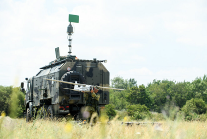 2018年斯拉夫兄弟演习中,士兵将"海鹰-10"无人机运载至指挥车后方。该机型设计为前线部队快速组装部署。[俄罗斯国防部]