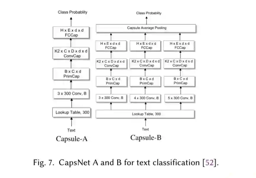 胶囊网络解决了CNNs的池化操作所带来的信息丢失问题,最近已被应用于文本分类(第2.4节)。