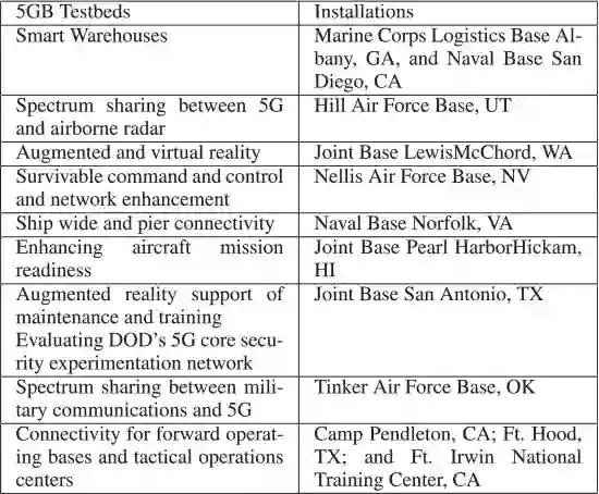 表 2 美国 5GB 军事设施和测试平台