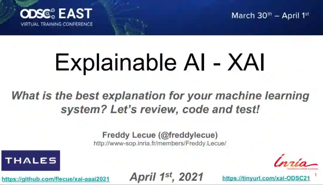 【导读】开放数据科学会议ODSC21在 3 月 30日-4 月 1日,大会涵盖了众多最近研究报告,来自Freddy Lecue博士做了关于可解释人工智能的进展报告,非常值得关注!