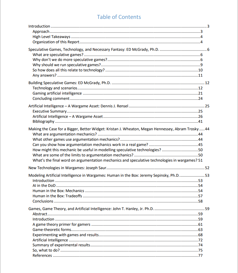 与以前的技术突破相比,表示人工智能最具挑战性的部分可能是人工智能使人类决策者感到惊讶的能力。虽然人工智能系统在做决策,但它们并不是在做人类的决策。它们使用不同的手段得出的答案可能与人类的决策大不相同。这种改变决策的基本叙述的能力是人工智能给现代兵棋设计师带来的重大挑战。