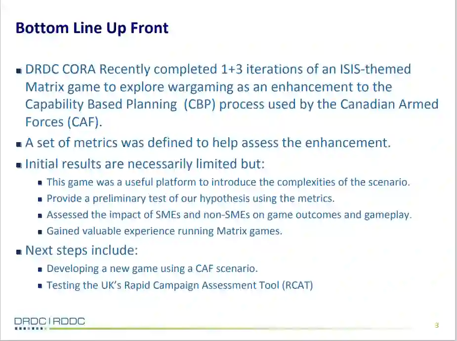 《支持战略规划的兵棋推演》22页PPT,加拿大国防研究与发展部