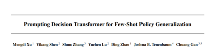 人们可以利用以前的经验,并从少量的演示中学习新的任务。与旨在通过更好的算法设计实现快速适应的离线元强化学习相比,我们研究了架构诱导偏差对少样本学习能力的影响。我们提出了一种基于提示的决策Transformer (Prompt- DT),它利用了Transformer体系结构和提示框架的顺序建模能力,实现离线RL中的少样本适应。我们设计了轨迹提示,其中包含了几个样本的演示片段,并编码了特定任务的信息来指导策略的生成。我们在5个MuJoCo控制基准测试中的实验表明,Prompt-DT是一个强大的少样本学习器,无需对看不见的目标任务进行任何额外的微调。Prompt-D比它的变体和强元离线RL基线有很大的优势,它的轨迹提示只包含几个时间步。Prompt-D对于提示长度的更改也很稳健,并且可以泛化到分布外(OOD)环境。项目页面:https://mxu34.github.io/PromptDT/。
