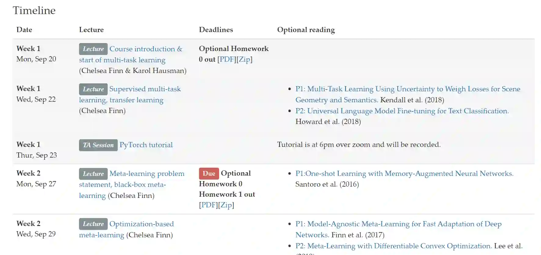 斯坦福大学的CS 330课程Deep Multi-Task and Meta Learning(深度多任务学习与元学习)正在进行中,官方网站中部分Notes已放出。