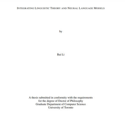 基于Transformer的语言模型最近在许多自然语言任务中取得了显著的成果。然而,在排行榜上的表现通常是通过利用大量的训练数据和计算来实现的,而很少通过将显性语言知识编码到神经模型中来实现。这导致许多人质疑语言学与现代自然语言处理的相关性。在本论文中,我提出了几个案例研究,以说明如何理论语言学和深度神经语言模型仍然相互关联。首先,语言模型为语言学家提供了一个自动、客观的工具来测量语义距离,这是传统方法难以做到的。另一方面,语言学理论通过提供框架和数据来源,为语言理解的特定方面探索我们的语言模型,从而为语言建模研究做出贡献。