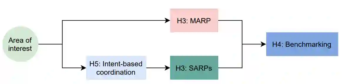 图 1.2 显示了总体结构。在给出 AOI 的情况下,基于意图的协调为多个 SARP 创建子集。合并后的结果应类似于 MARP 的最优解,这可以使用特定的基准方法进行评估。因此,本论文的主要贡献可以列举如下: