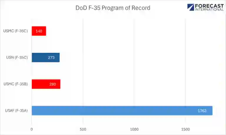 F-35项目是美国防部最具雄心且影响最广的武器系统计划,项目服役周期达77年,总预算估算为2.1万亿美元。美国总体采购计划要求为空军、海军及海军陆战队生产总计2,456架各型号F-35战机。