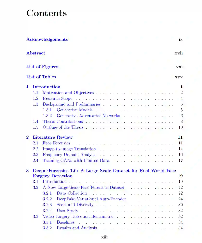 数据是深度学习的本质。对于图像和视频生成及其下游应用而言,高质量的数据集是非常可取的。此外,研究人员通常非常关注提高生成质量,却忽略了对由生成数据引起的问题(如“Deepfakes”)的防范。与其他研究不同,本论文的第一项尝试是构建一个有用的面部视频数据集,以促进后续研究,并通过设计更好的视频操纵方法来防止生成数据的负面影响。介绍了DeeperForensics-1.0,这是一个用于现实世界面部伪造检测的大规模视频数据集。正在进行的努力是应对“Deepfakes”,它引发了合法的担忧,尤其是在可能被滥用和误用方面。它代表了同类中最广泛的数据集之一,由总共1760万帧构成的60,000个视频组成。应用了广泛的现实世界扰动,以获得更具挑战性、规模更大、多样性更高的基准。DeeperForensics-1.0中的所有源视频都是精心收集的,假视频是由新提出的端到端面部交换框架生成的。生成视频的质量超过了现有数据集中的视频,经用户研究验证。基准特点是一个隐藏的测试集,其中包含高欺骗性分数的操纵视频。进行了全面研究,评估了五个代表性的检测基线,并对不同设置进行了彻底的分析。这项工作验证了设计更好的视频操纵方法可以协助面部取证。