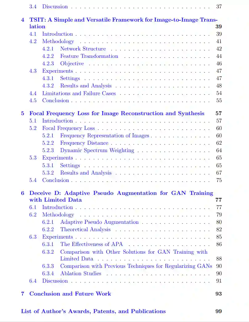 除了图像和视频生成的实践角度上的进展外,本论文进一步希望通过更基础和理论的研究解决剩余问题。本论文的第三项工作是焦频损失(FFL),这是一种新颖的频率级损失函数,直接在频率域优化生成模型。该损失与不同类别、网络结构和任务的多样化基线的现有空间损失相辅相成。尽管得益于生成模型的发展,图像重建和合成取得了显著的成功,但在真实和生成图像之间,尤其是在频率域,仍可能存在差距。论文表明,缩小频率域中的差距可以进一步提高图像重建和合成质量。所提出的FFL允许模型适应性地关注难以合成的频率分量,降低容易合成的分量的权重。这一目标函数为抵抗神经网络固有偏见导致的重要频率信息丢失提供了很大的阻力。论文证明了FFL在提高VAE、pix2pix和SPADE等流行模型的感知质量和量化性能方面的多功能性和有效性。其在StyleGAN2上的潜力进一步展示。